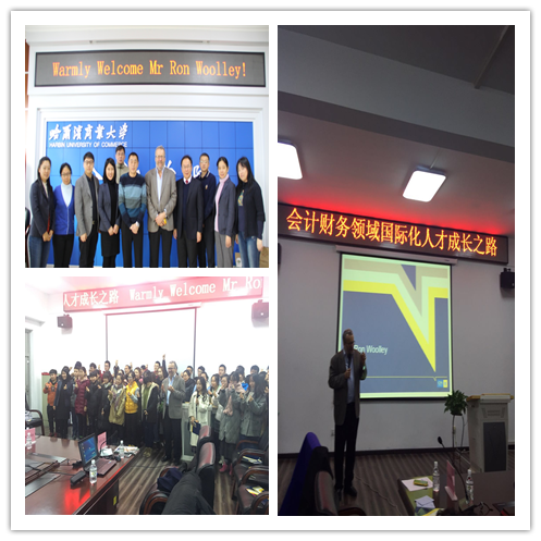 2017年11月15日,澳洲会计师公会全球课程认证顾问Ron Woolley先生与北京代表处业务拓展主任Sofia Chen来到哈尔滨商业大学会计学院访问。Ron Woolley先生一行此次访问的主要目的是对会计学院与澳洲会计师公会在2017年5月签署的课程认证合作项目的后续发展开展调研与座谈。15日上午的座谈包括三个层面:与院领导座谈、与认证课程专业教师座谈、与认证课程专业学生座谈。Ron Woolley先生对座谈过程与结果非常满意,称“哈商大会计学院是一个很棒的合作伙伴”。