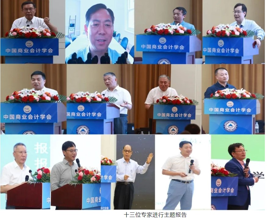 对外经济贸易大学原副校长张新民、南京审计大学校长董必荣、中国人民大学会计系主任张敏、山东财经大学智能会计与数字企业研究院院长王爱国、中国会计学会副秘书长刘国强、南京审计大学政府审计学院院长周维培、山西省财政税务专科学校原校长赵丽生、云南财经大学副校长余怒涛、北京工商大学原副校长谢志华、上海财经大学会计学院院长靳庆鲁、中南财经政法大学会计学院院长张敦力、南京财经大学原副校长王开田、清华大学数智审计研究中心主任陈关亭,分别在大会上作了题为“数智时代财会教师的能力建设”、“智能会计人才培养若干问题思考”、“AI时代的会计:以ChatGPT为例”、“智能会计专业核心课程体系及教学资源平台建设”、“智能会计理论研究的机遇与挑战”、“大数据国家战略背景下的审计数据标准体系建设”、“数智化时代职业教育会计专业的转型升级”、“数字化环境下财经类高校专业变革与发展”、“数智化与会计的变革”、“大数据应用能力、投资响应与公司实物期权价值”、“数智时代财会类人才培养改革创新”“元宇宙会计构想”“审计4.0:数智审计”的主题报告。