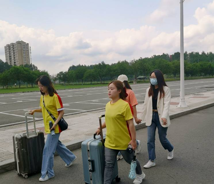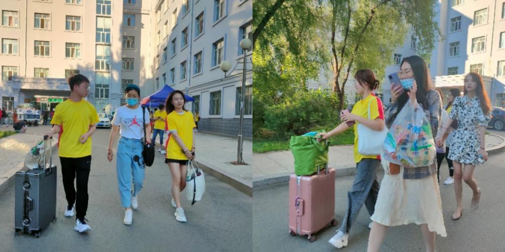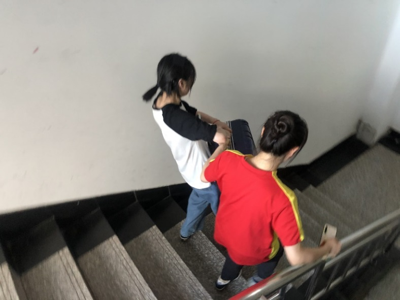 炎炎夏日,党员志愿者们在毕业生寝室楼层轮流值班,以饱满的热情、积极的态度,按照毕业生的需求将行李搬运到指定地点。