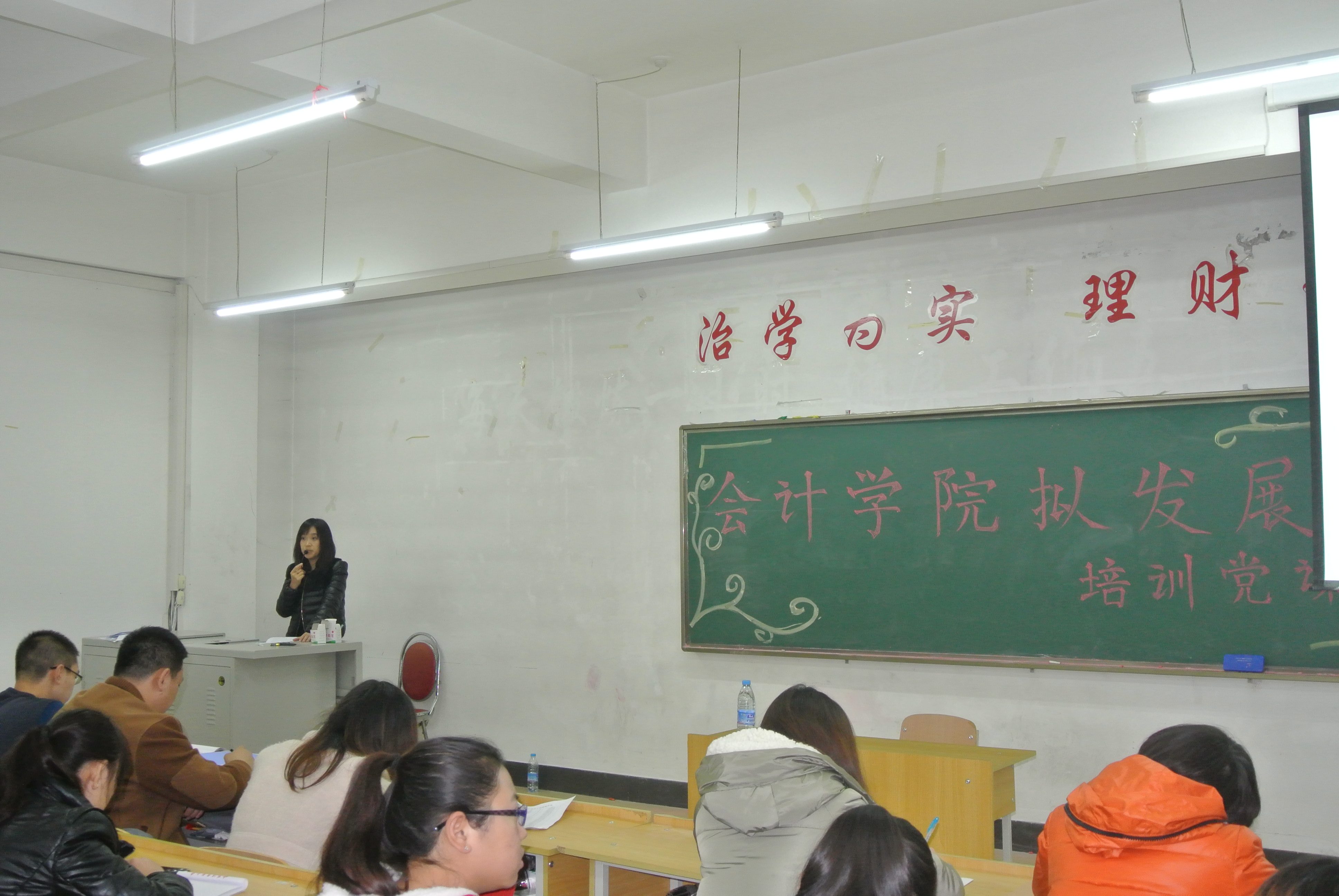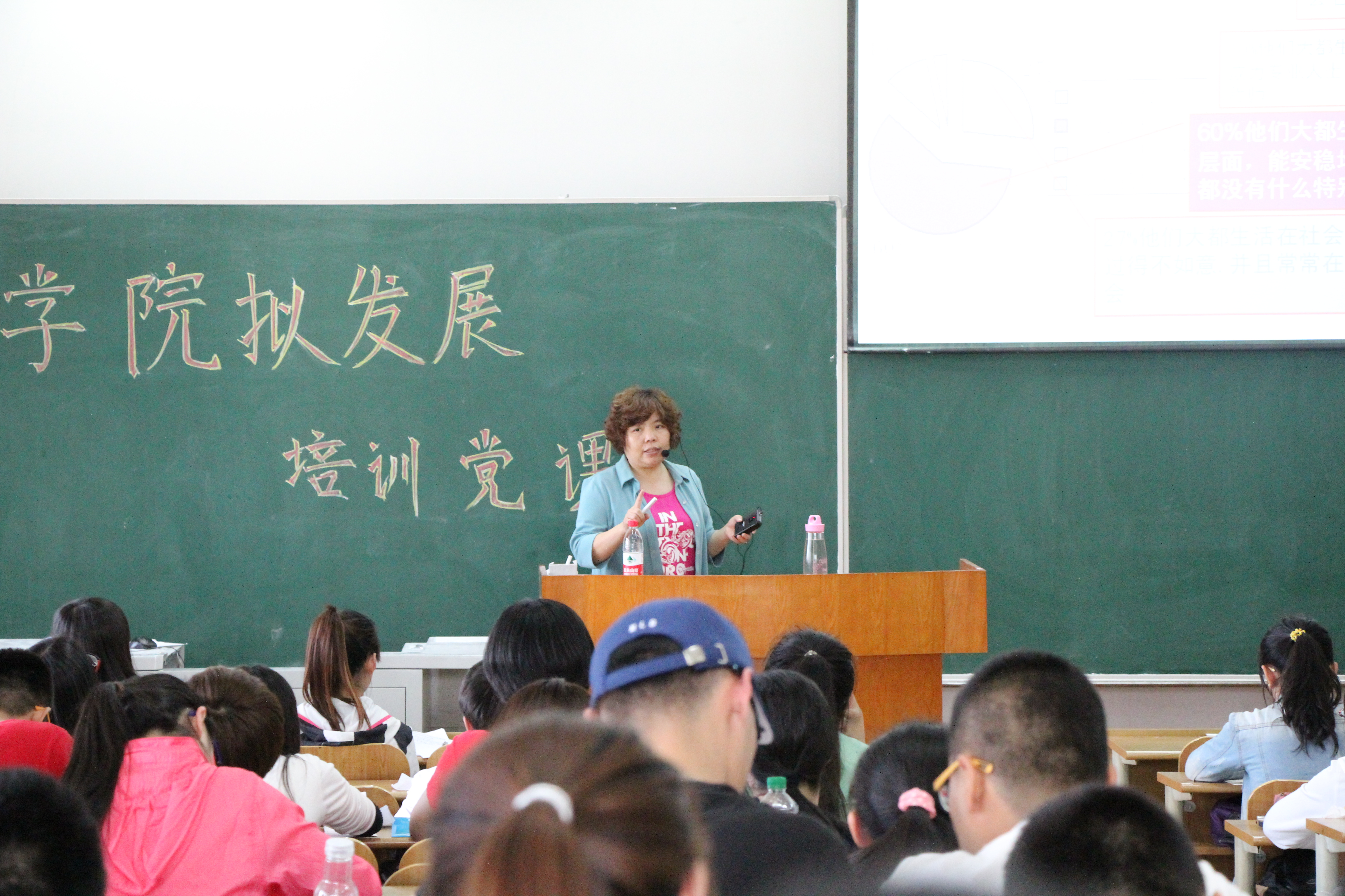 哈商大会计学院为发展新一届拟发展党员,促进基层党组织建设,帮助有入党意愿的同学端正思想、提高素质,于2014年5月26日在1413教室开展拟发展党员第一次党课培训。