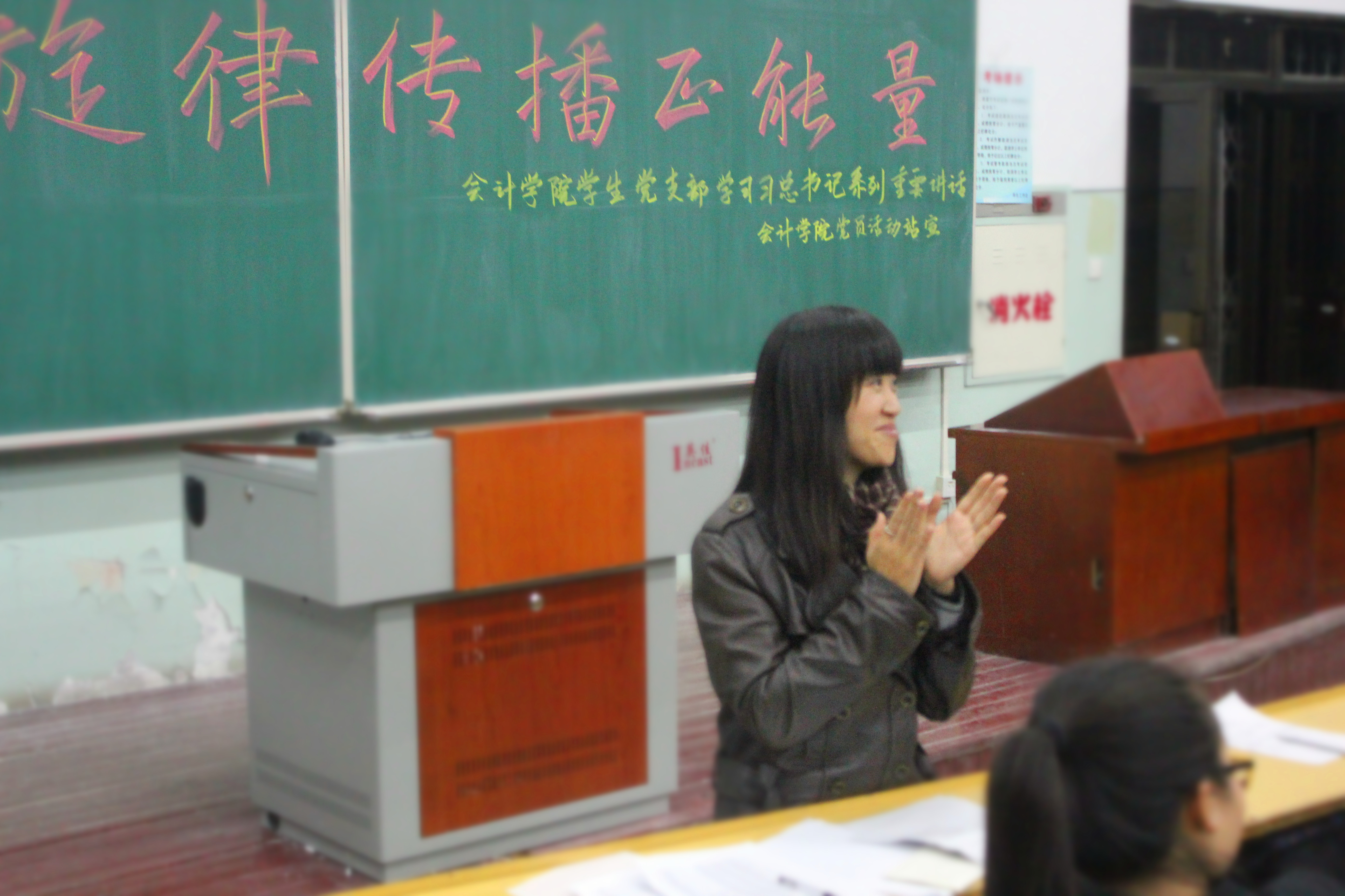 为弘扬主旋律,传播正能量,会计学院学生党支部于2014年10月23日在B区2105开展了关于“习书记系列重要讲话”的学习和研讨。出席本次活动的有会计学院党总支部副书记刘天副教授及2012级、2013级全体党员。