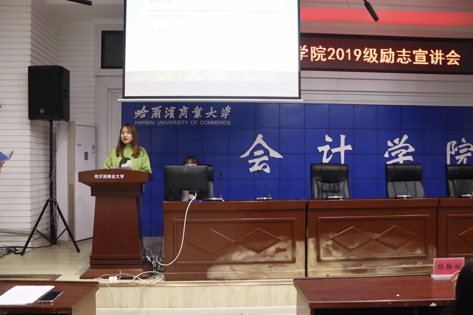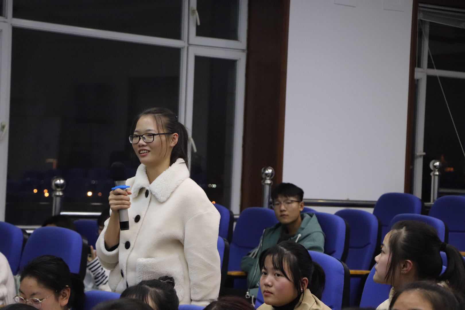 随后邀请了2016级刘晓,2017级韩春璐和徐湖仪同学分别结合自己的经历和大家分享她们的大学生活规划和学习方法,并耐心细致的解答2019级同学的提问。最后,会计学院学生资助管理办公室的同学表演励志手语舞《隐形的翅膀》,大会的氛围变的温馨起来,会场被友爱围绕,同学们深受感动。
