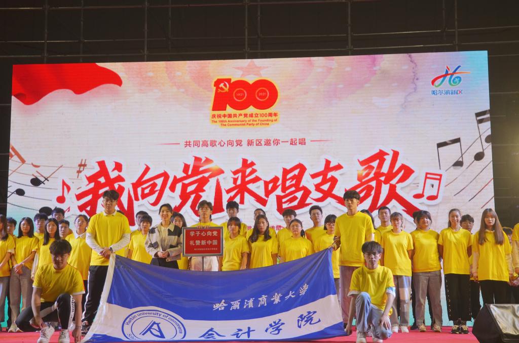 百年征程波澜壮阔,百年初心历久弥坚。为庆祝建党100周年,热情讴歌建党以来的光辉历程和改革开放的伟大成绩,全面掀起歌唱建党百年光辉历程高潮。4月27日上午,哈尔滨商业大学会计学院辅导员姜译涵带领50名学生参加了由哈尔滨新区党工委宣传部主办的“我向党来唱支歌”主题活动。