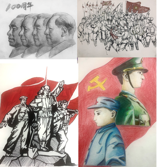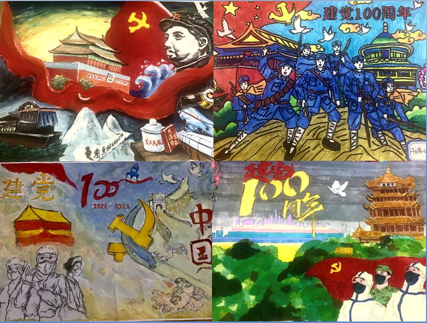 5月上旬,我院开展了描绘百年党史活动,此项活动是以绘画的形式表达对党的深厚情感,学生们紧紧围绕中国共产党一百年来走过的风雨历程为主题,坚持原创,为我们呈现出了一幅幅精彩的画卷。有万里长城、嘉兴南湖的红船、红军长征路这些承载着中国共产党发展至今的红色记忆,有航天火箭和国产高铁这些新时代成就,也有舍生忘死、命运与共的伟大抗疫精神。同学们在创作过程中重温了中国共产党带领全国各族人民艰苦奋斗的历程,在实践中上了一堂生动的党史教育课,更加明确了新时代青年与时代同行的历史使命。