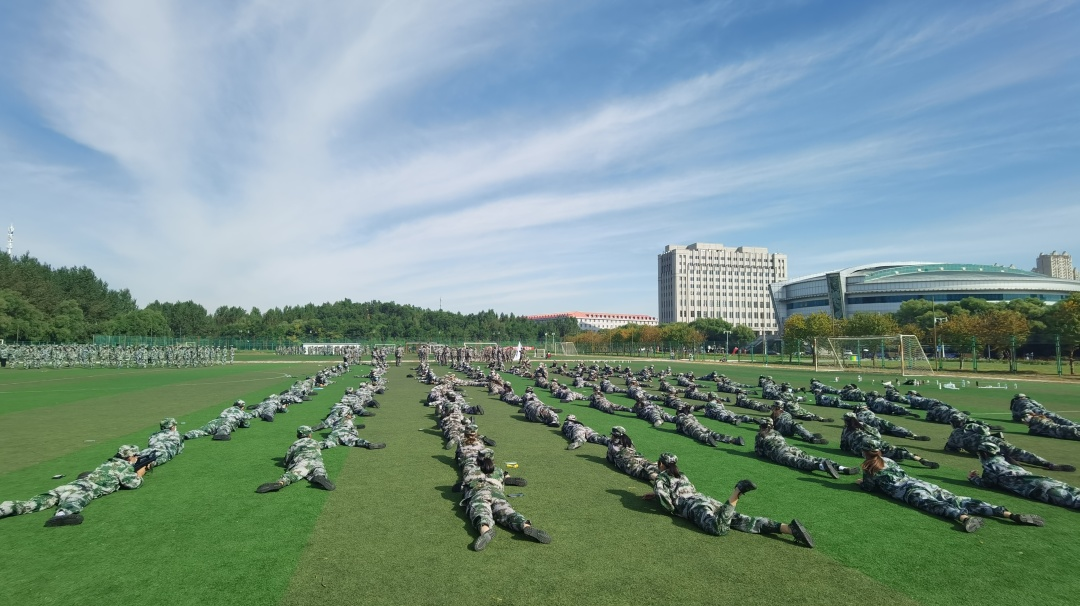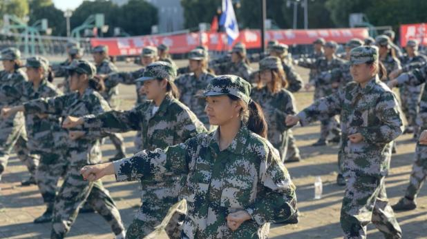 你们迈着矫健的步伐,喊着响彻云霄的口号,阴雨也阻挡不了你们的热情高涨,新生青春风采初显,自信且张扬。