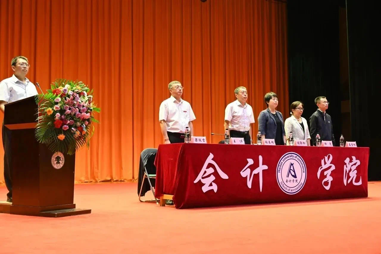 8月30日17:00,哈尔滨商业大学会计学院2023级新生开学典礼在B区大礼堂顺利举行。会计学院党委书记张春明、院长张劲松、党委副书记王博、副院长徐鹿、副院长梁运吉、副院长姜雪松出席典礼。学院教师代表、全体辅导员老师、2023级本、硕、博605名新生参加典礼。典礼由院党委副书记王博主持。