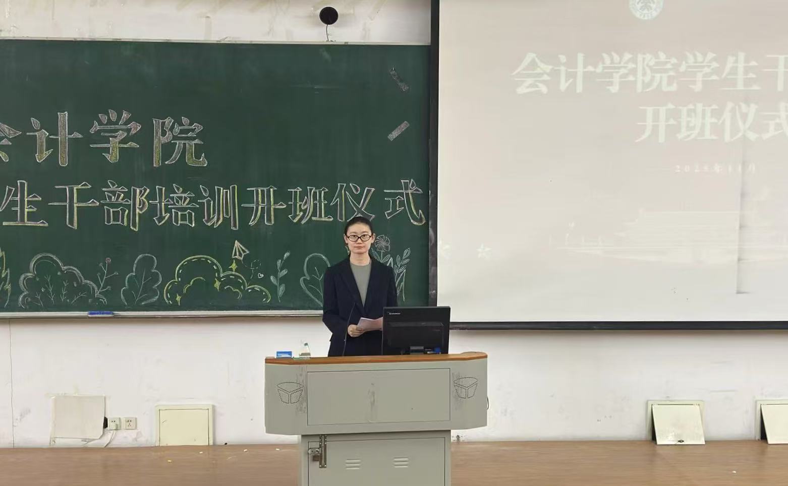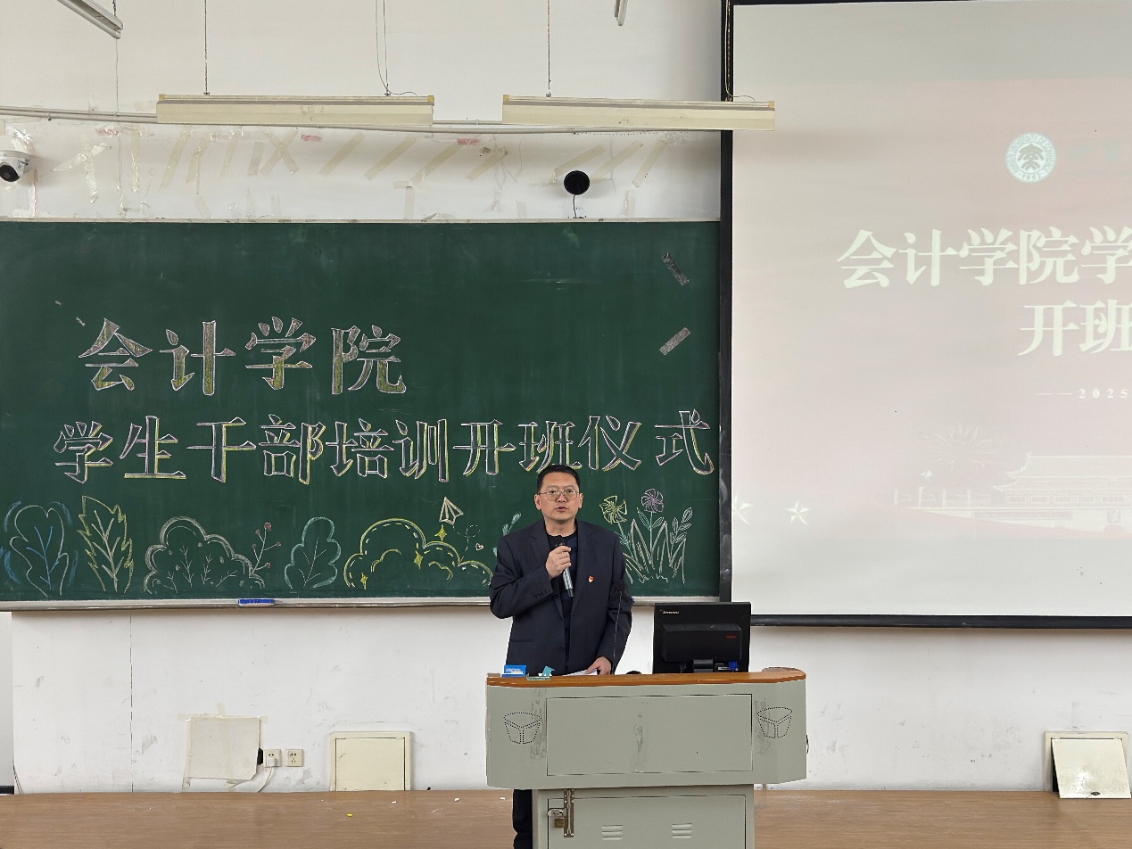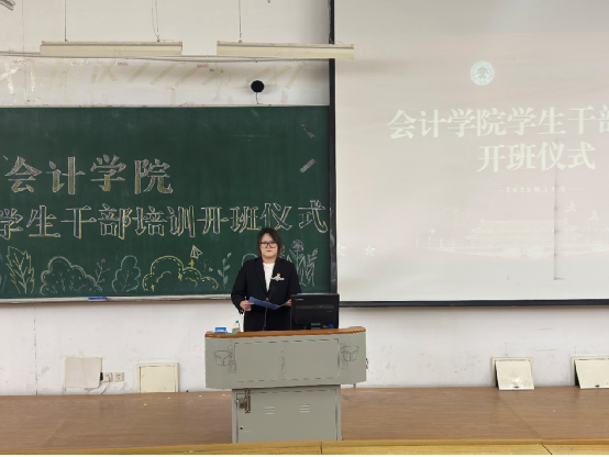 为了全面提升学生干部的综合素质、服务意识与管理能力,11月26日,会计学院举行2025年学生干部培训开班仪式,会计学院党委副书记王博及全体辅导员老师出席开班式,开班式由张涵老师主持。