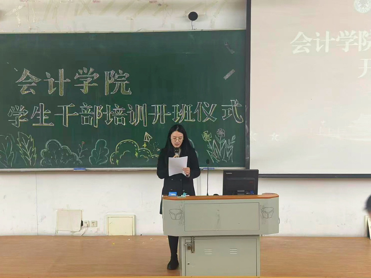 最后,会计学院团委书记白璐宣读会计学院学生干部培训内容及培训要求。她鼓励学生干部提高政治意识、大局意识、责任意识、合作意识和服务意识。处理好学习与工作的关系,同学与老师的关系,集体利益与个人利益关系。希望同学们不断加强理论学习,深刻理解时代赋予青年的历史使命,将个人成长融入国家发展和民族复兴的伟大征程中,让青春在为祖国、为人民的奉献中焕发绚丽光彩。