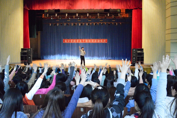 2014年4月17日16:30,会计学院在B区大礼堂隆重举行了学生干部培训启动仪式。莅临本次大会的嘉宾有会计学院党总支书记陈慧华教授,院团委书记、2012级辅导员王博老师,2011级辅导员白璐老师,2013级辅导员韩雪老师、李慧铭老师以及辅导员陆黎敏老师、奚迪老师。