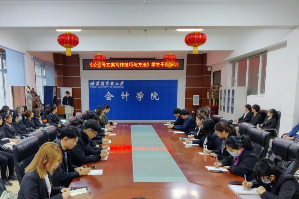 为提高会计学院学生干部的写作文笔功底,熟练推文排版技术,4月7日17时,会计学院在1405会议室举行了《公众号文案写作技巧与方法》培训会。会计学院团委书记白璐老师、校新媒体工作室部长陈富海、院学生组织各部门部长、干事参加了此次培训。