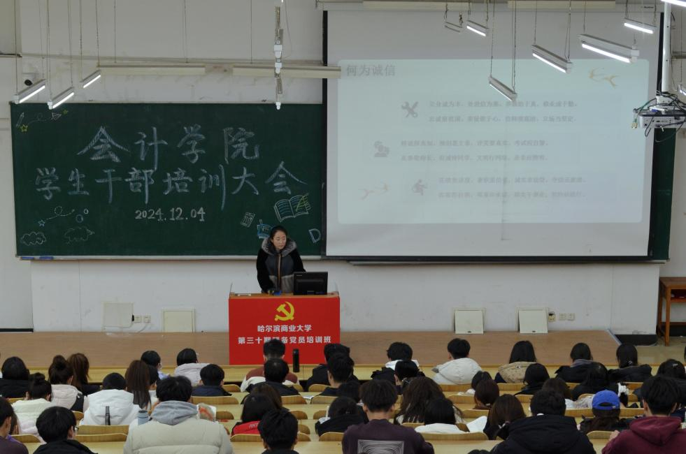 为进一步加强学生干部队伍建设,提高学生组织内部凝聚力,增强诚信意识、提升道德素养、掌握沟通技巧,会计学院分别于12月4日、12月5日开展2024年学生干部培训第三、四讲课程。