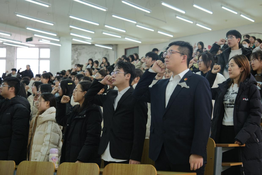 会计学院团委学生兼职副书记、2022级会计学3班赵斯文同学带领全体学生干部进行宣誓。每一字词,皆为责任担当的铭刻;每一句落,都是砥砺前行的注脚。自此,会计学院学生干部将以行动践行誓言,于学习中精进,在工作里热忱。如繁星汇聚,以微芒照亮校园,凭信念与努力,书写会计学院学生干部的荣耀华章。