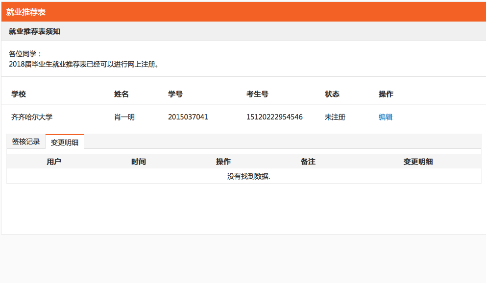 学生入职后可根据用人单位实际需要,可自行注册并打印推荐表。登录学校就业网并在首页找到“推荐表注册”模块,点击并打开新页面后根据要求依次填入信息,请确保填入的信息务必真实,完成后提交由学校管理员审核。