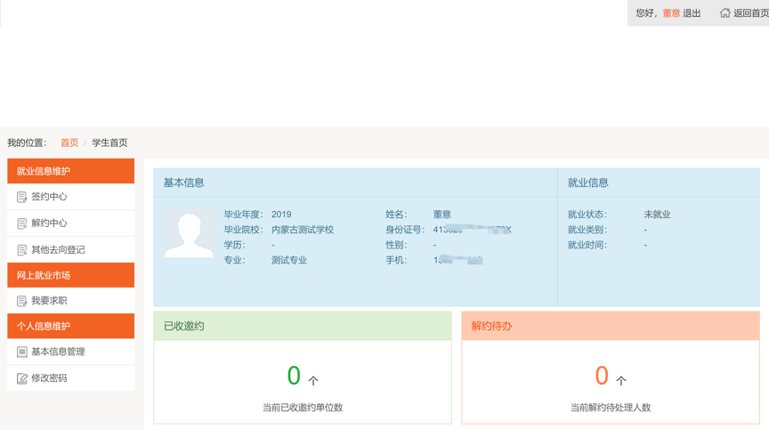 (3)已收邀约:展示学生共收到多少份用人单位发来的签约邀请函。