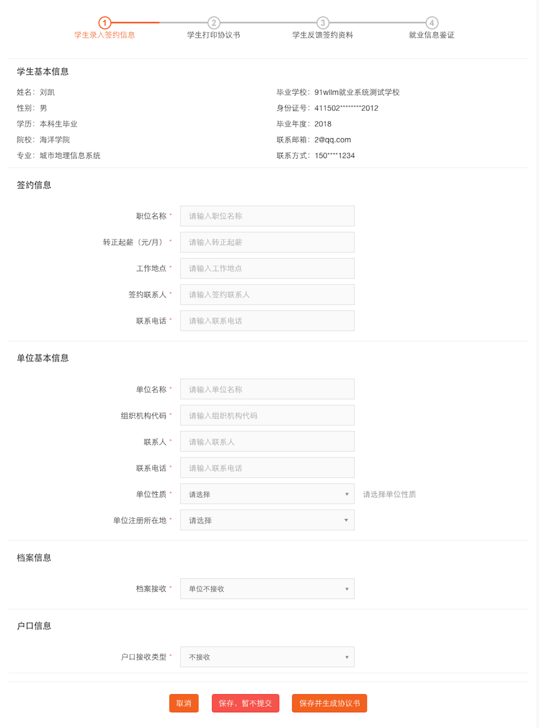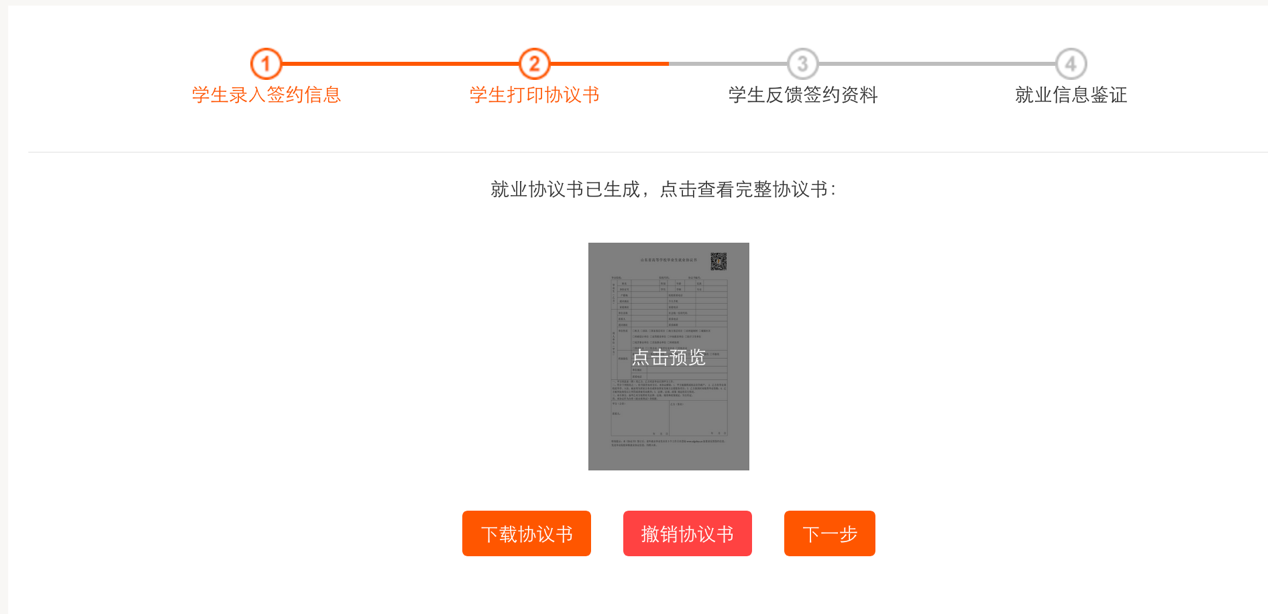 生成协议书后学生可以预览并下载协议书,此时如果协议书信息有误学生可撤回协议书并重新编辑。