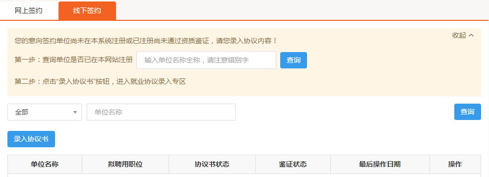 协议书无误后点击“下一步”按钮,提示学生需持打印好的纸质协议书到用人单位和学校盖章并在此处上传。上传后即可等待学校老师鉴证审核。