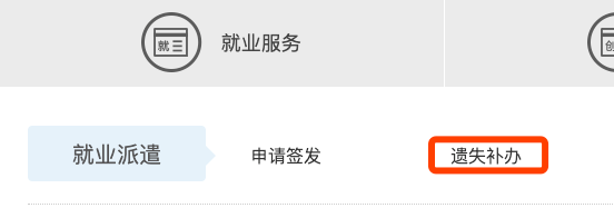 学生毕业后,报到证遗失补办业务经由平台门户报到证遗失补办服务自助登记,如下图所示: