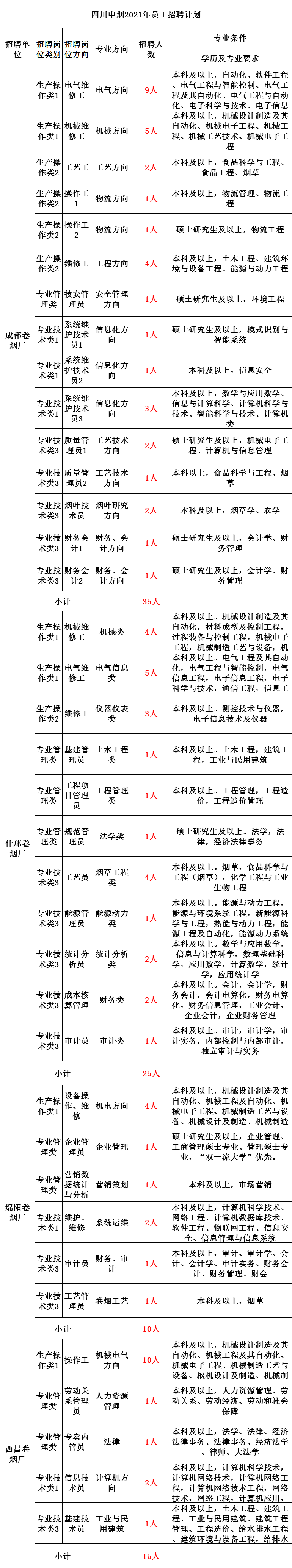 2.四川中烟工业有限责任公司2021年度员工招聘公告