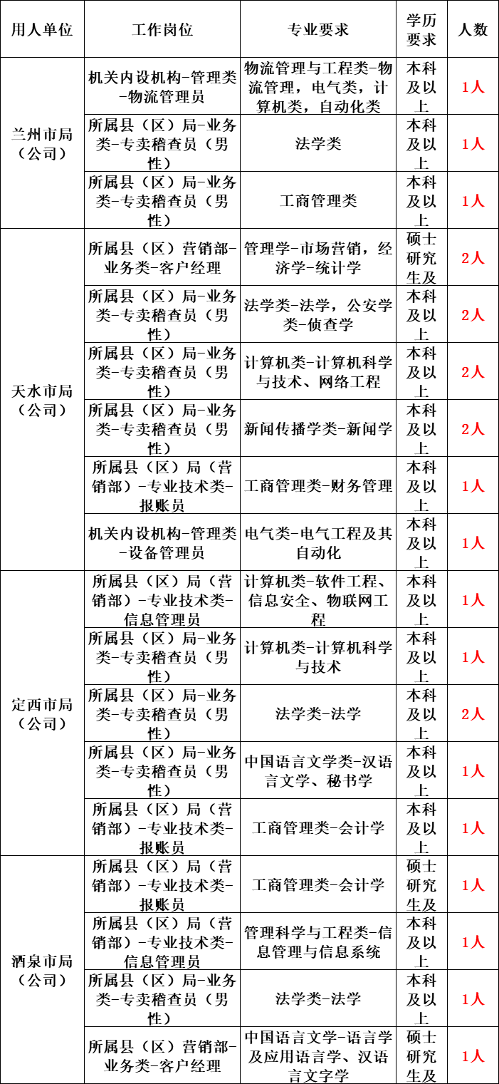 甘肃省烟草专卖局(公司)2021年应届高校毕业生招聘公告