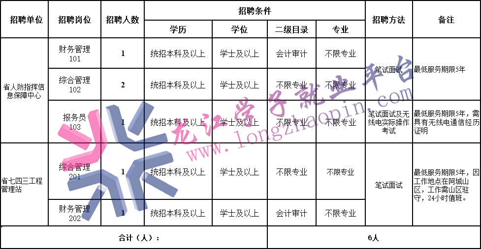 (一)黑龙江省人防指挥信息保障中心招聘财务管理岗位1名,报务员岗位1名,综合管理岗位2名。