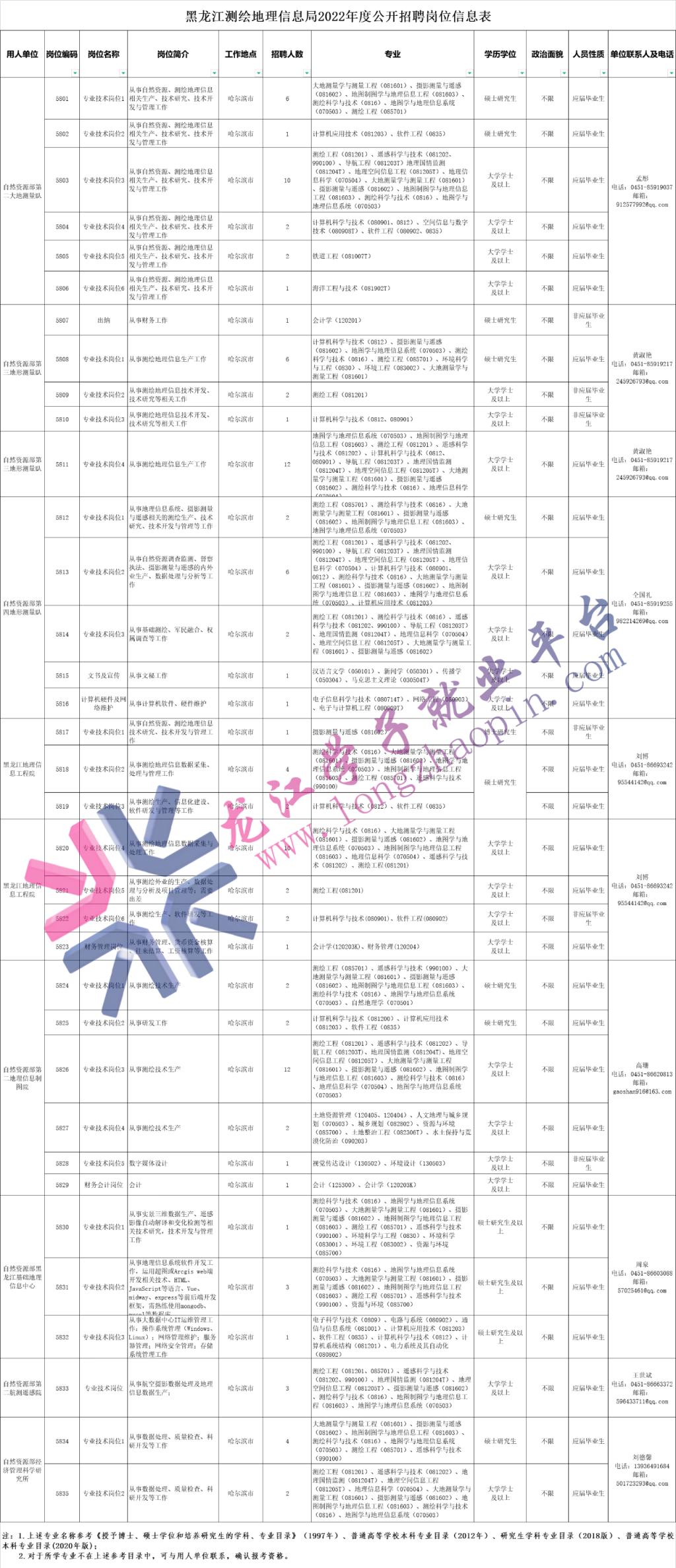 (三)请考生关注中央和国家机关所属事业单位公开招聘服务平台、自然资源部门户网站及黑龙江测绘地理信息局门户网站,及时掌握相关信息。