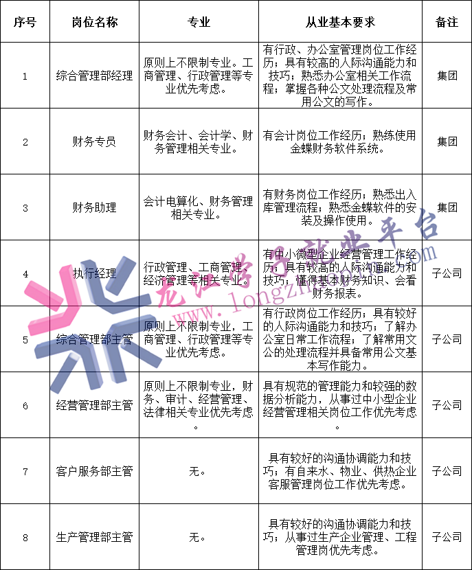 为适应当前事业发展需要,完善人才队伍建设,为企业的长期发展提供充足的人才保障,现就黑龙江中源恒昇水利发展集团有限公司(原肇源县水务集团有限公司)及子公司公开招聘工作人员相关事项公告如下:
