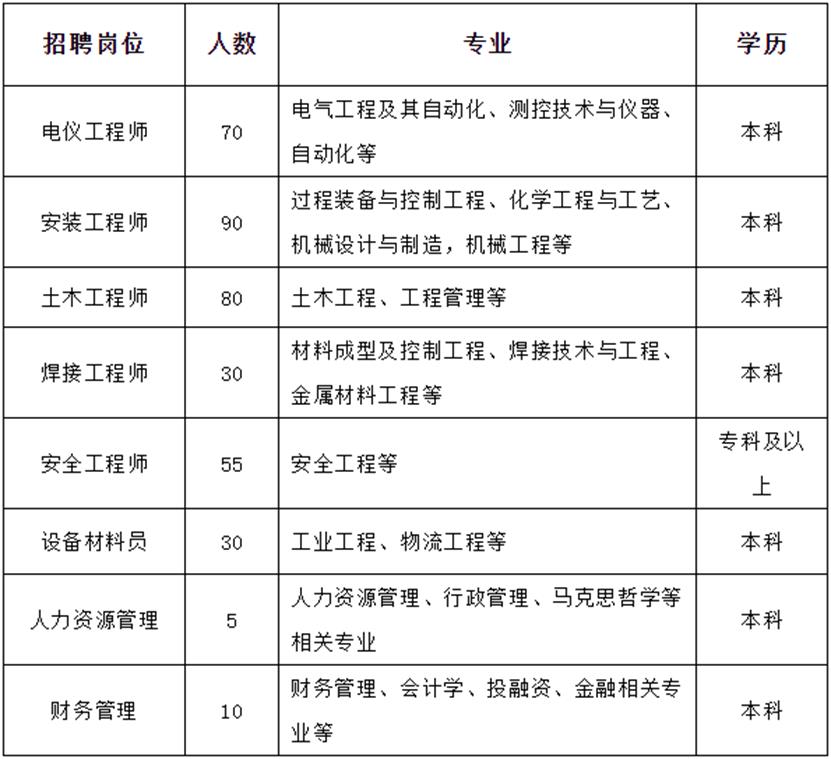 当前公司正处在改革转型跨越发展的关键期,公司大力实施“人才强企”战略,以“引进人才、培育人才、成就人才”的理念,以开放包容的姿态,以广阔的发展舞台,诚邀有志于从事国内外化工建设事业的人才加盟,共筑梦想、共创未来、共享辉煌!