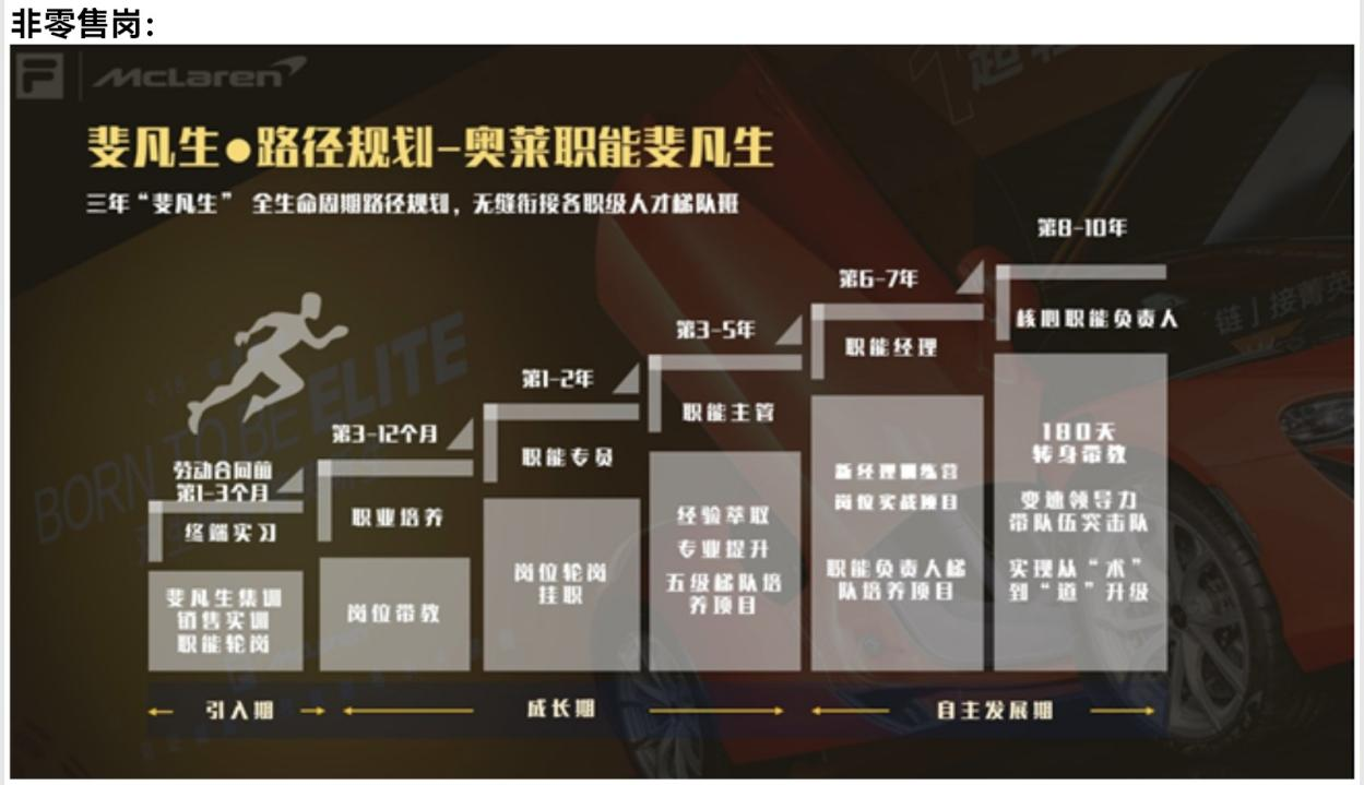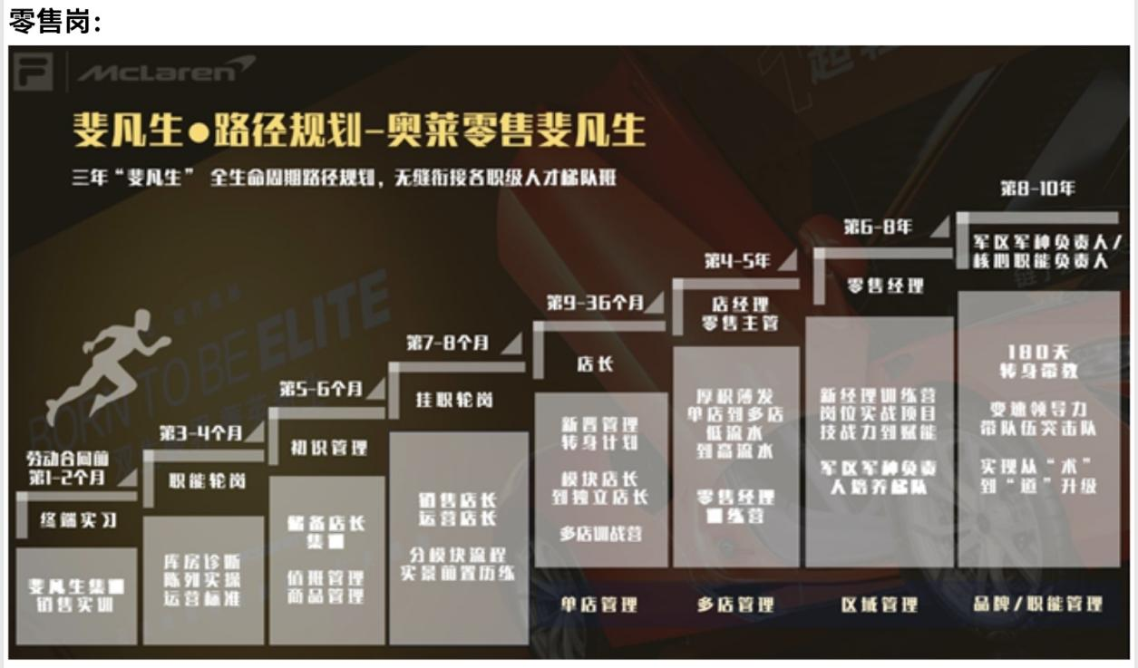 在经历零售终端岗位实践,商品/陈列/培训/营销等岗位轮岗后,积累和掌握管理区域及提高生意的能力,将成长为军区军种(大区总经理/事业部负责人)及核心职能的高管储备梯队: