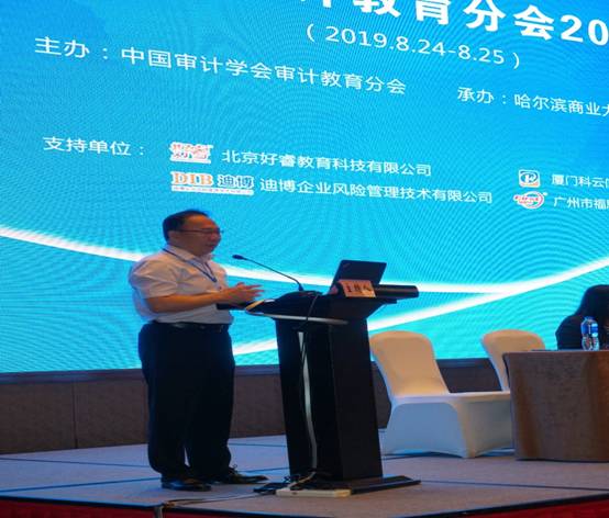 中国审计学会审计教育分会2019年会于2019年8月24日-25日在哈尔滨融创万达嘉华酒店顺利召开,本次会议由中国审计学会教育分会主办,哈尔滨商业大学会计学院承办。中国审计学会董大胜会长、黑龙江省审计厅孙钢副厅长、我校郑秋鹛校长等出席会议并致辞,张林副校长主持开幕式。