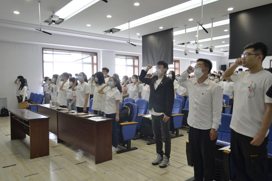 重温“入党谈话”环节,毕业生党员张东硕回忆起当年的入党谈话,对党组织和老师的教诲与引导充满感激,同时号召大家不忘入党初心,把对马克思主义的坚定信仰转化为建设祖国、奉献社会和服务人民的力量源泉,坚定信念,砥砺前行。重温“入党志愿书”环节,毕业生党员李仲文怀着入党时的真诚和激情宣读了自己的入党志愿书,郑重写下志愿书的澎湃心情感染了与会党员,共同回首过去,展望未来,满载着对母校的热爱,对未来的憧憬,坚定了所有人对入党志愿践诺一生的决心。重温“入党誓词”环节,全体与会人员在学生党员代表陈润泽的带领下,面向党旗,举起右拳,庄严宣誓。