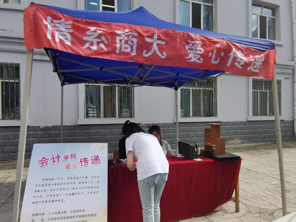 为引导毕业生文明离校,感恩母校,会计学院学资办于2021年6月20日—21日在17公寓楼下举办毕业生爱心捐赠活动。