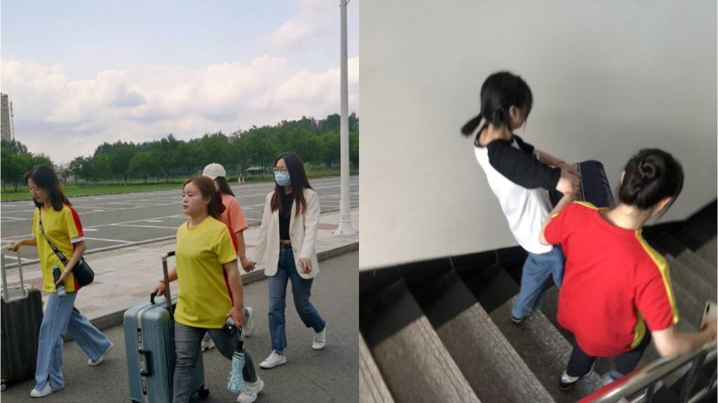 炎炎夏日,党员志愿者们在毕业生寝室楼层轮流值班,以饱满的热情、积极的态度,按照毕业生的需求将行李搬运到指定地点。