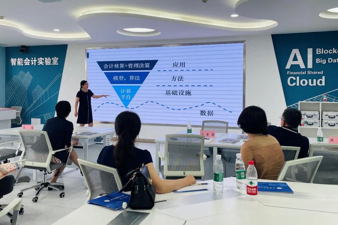 山东财经大学会计学院院长王爱国教授分享了智能会计的基本内涵和发展逻辑,王教授认为智能会计是会计管理活动,是会计科学与计算科学、人工智能相互渗透、相互结合的产物,是一门交叉学科,具有计算会计科学属性,是一个至少包括信息形成系统、决策支持系统、管理控制系统、行为调节系统等内容的会计管理生态系统。同时,王教授详细介绍了智能会计专业建设的探索与实践,为会计学院智能会计专业建设拓展了建设思路、提供了宝贵的经验借鉴。