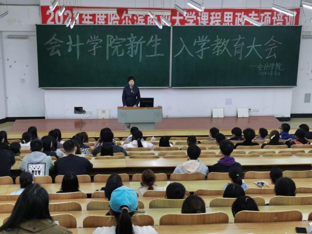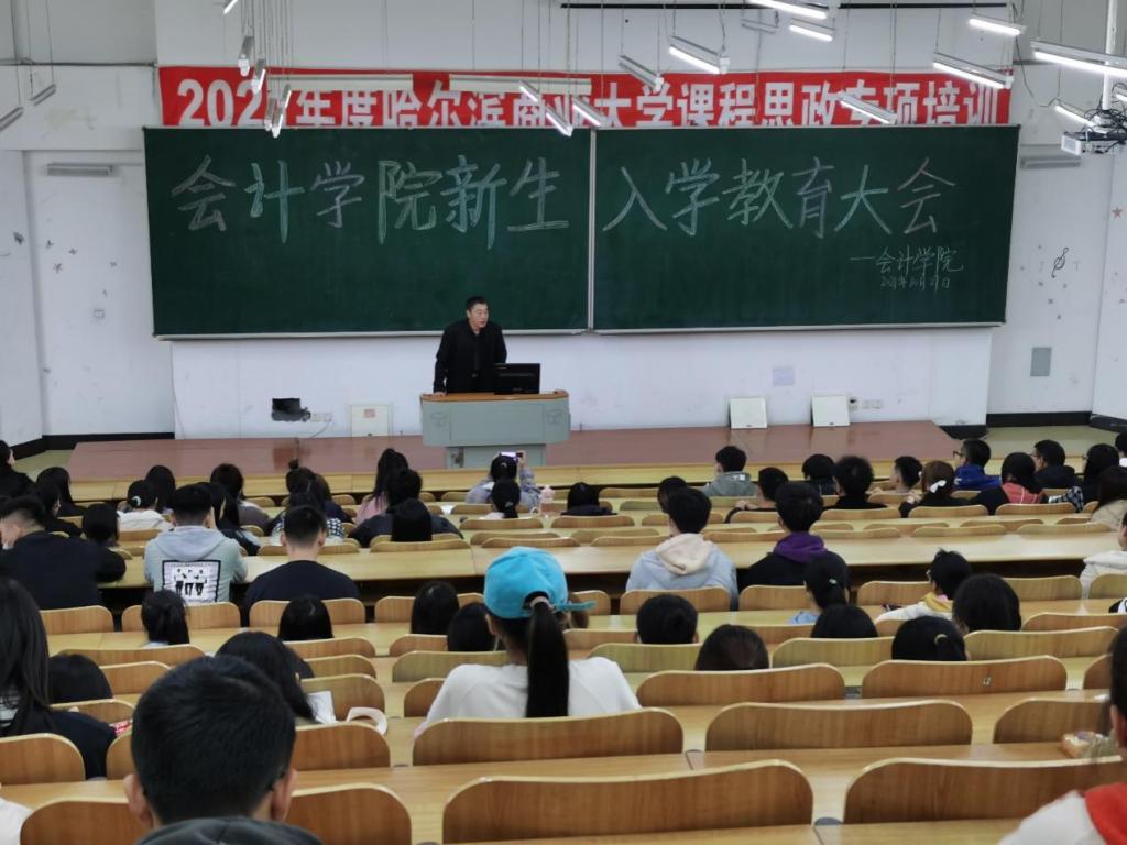 10月27日,会计学院2021级新生入学教育大会隆重举行。院党委书记张春明、院长张劲松,新生辅导员韩雪老师、李慧铭老师出席本次大会。