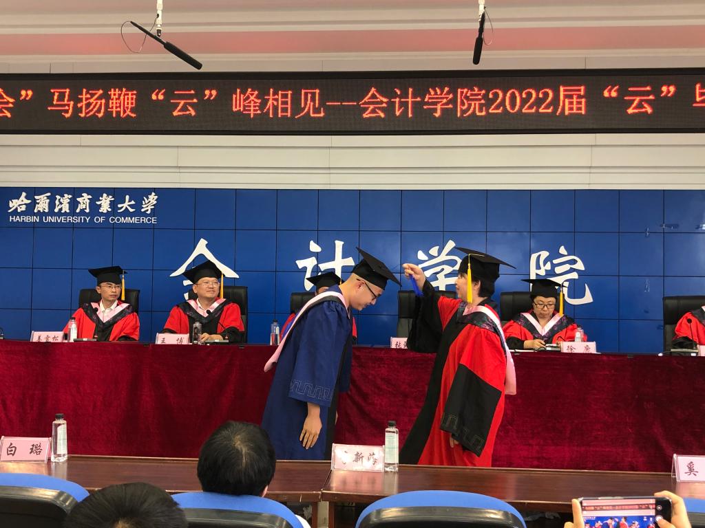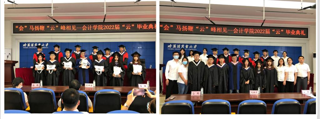 6月12日下午,在即将迎来我校七十华诞之际,会计学院以线上线下相结合的形式,举办2022届研究生和本科生的 “云”毕业典礼。会计学院党委书记张春明、会计学院院长张劲松、会计学院党委副书记王博、会计学院副院长徐鹿、会计学院副院长梁运吉、会计学院副院长姜雪松、学院研究生管理办公室主任李新海、全体辅导员老师以及部分专业教师和在校毕业生参加典礼。王博主持典礼。