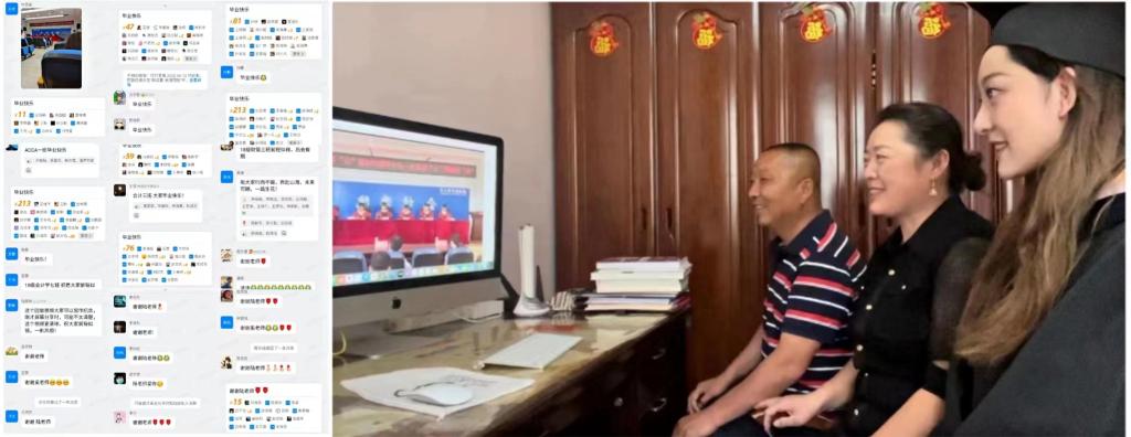 伴随着《送别》的乐声,全场师生合影留念。在直播镜头中,一声声“ 三二一”,定格了四年的青春时光,师生脸上流露出不舍的表情。直播间里,同学们诉说着在会计学院度过的美好时光,会计学院2022届毕业生“云”毕业典礼圆满落幕。