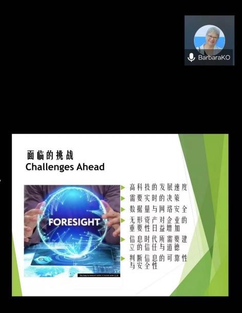 接下来分享的是好睿教育创始人/CEO季好力女士,季女士多年来一直从事财经教育工作,进行了题为《数智时代的国际化财会人才需求与变革》的分享。季女士也是从数智经济的特征与现状出发,分析了财会行业的变革以及对与人才的需求,越来越多的智慧商场、智慧工厂、智慧施工以及智慧农业等,对于现有的会计工作提出了更大的挑战。未来的社会需要具有更强职业适应能力的会计人才,这就需要会计人员需要通过学习的方式,推动技能转型,同时要具有更加国际化的视野,以适应国际化的发展需求。