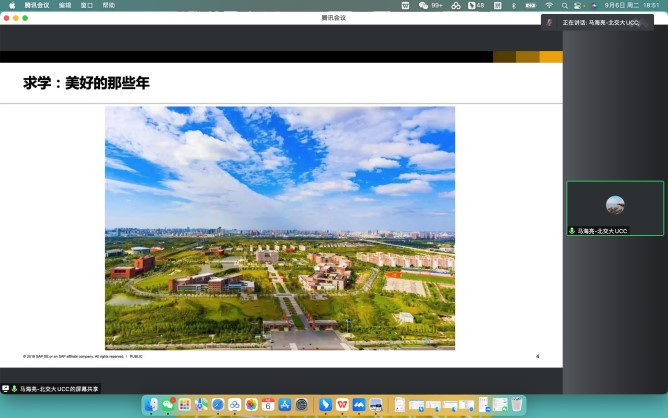 接下来分享是的北京交通大学SAP大学能力中心客户总监马海亮,他以《初心、使命、追逐》为题,介绍了一些SAP有关的课程,为刚刚进入大学学习的新生带来了更多的思考,在大学期间除了接受传统的课堂知识以外,也可以参加更多的和SAP有关的课程,以开拓自己的视野,提升自身数字化的专业能力。