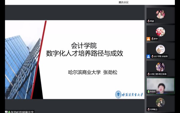 第三位分享的是哈尔滨商业大学会计学院院长张劲松,她进行了题为《会计学院数字化人才培养路径及成效》的分享。她为学生介绍了这些年来会计学院在数字化人才培养方面所做的工作,以及通过这些年的发展,会计学院数字化培养取得了很大的成绩。而下一步会继续推进数字化的发展,也会进一步加大对于数字化人才的培养力度。
