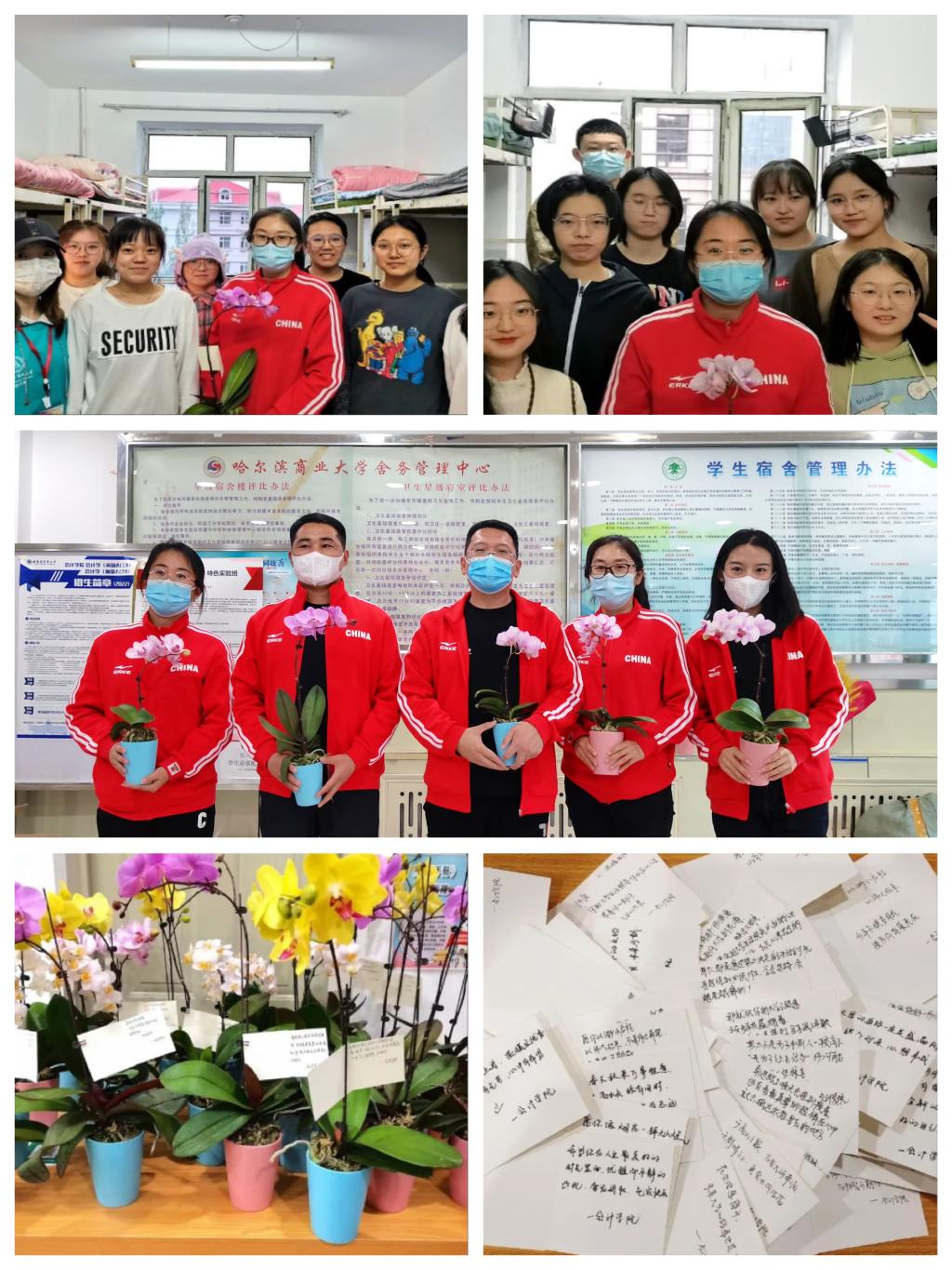 会计学院党委副书记王博携辅导员老师带领导生和舍管同学在18日晚上走访22级新生寝室,为新生送去学院精心准备的鲜花和手写贺卡,送上学院领导及老师的关怀与温暖,嘱托同学们注意寝室安全与卫生,倡导同学们建设文明温馨的寝室。