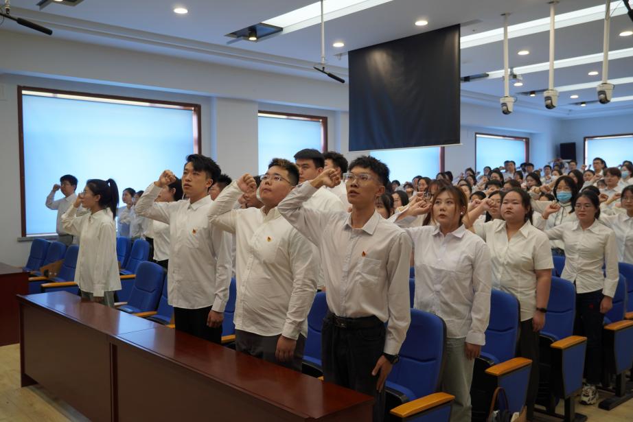 全体党员在学生党员代表王梓阳的带领下,面向党旗,庄严宣誓,铿锵有力的声音表达了党员们坚定的政治信仰,矢志不渝的动力和奋斗终身的决心。