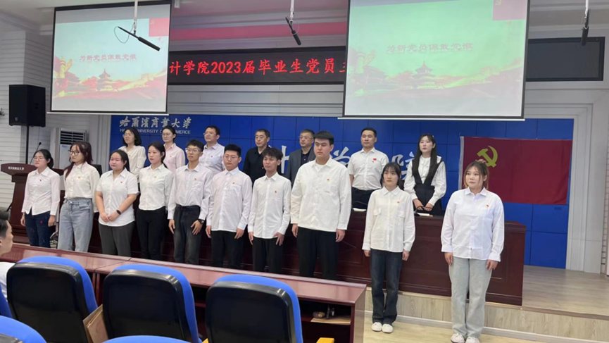 毕业党员于明慧、李强强代表毕业生党员共同重温了入党谈话和入党志愿书,毕业生党员曹立雪和张馨丹发表感言,他们表示,重温入党誓词和铭记政治生日增强了党员的党性意识和组织归属感,要做政治过硬的时代先锋、开拓创新的青春表率、脚踏实地的有用之才、修身养德的青年楷模,把自己的人生目标与祖国、时代的命运联系起来,把共产党员的先进性落实到日常行动中,以青春热血向党旗献礼。