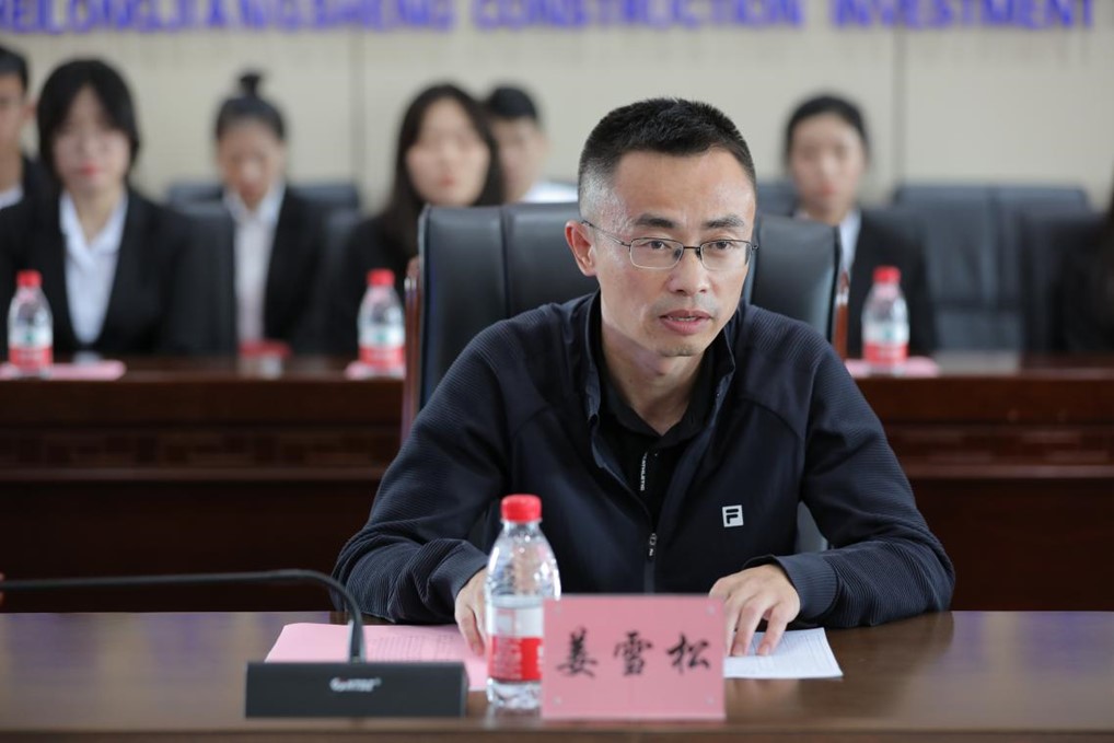 学院副院长姜雪松对本次建投集团为实习学生举办的欢迎会表示真诚的感谢,介绍了学院的整体发展状况,希望学生们能够通过本次实习在提高自身能力的同时,增强社会责任感、使命感,传播社会正能量;并重点强调了学生们在集团实习期间的工作纪律、保守商业机密、安全问题等事项。
