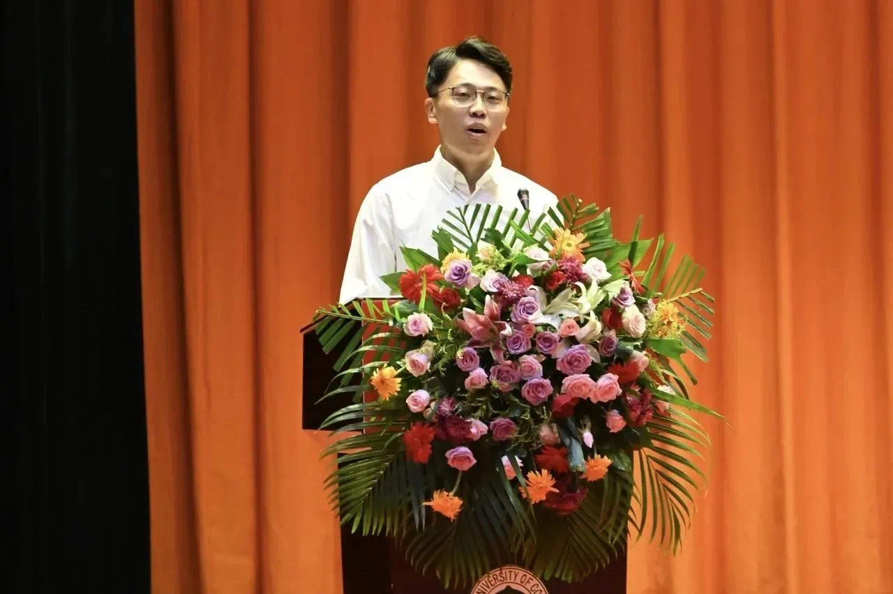 2023级工商管理类9班潘钰晴代表新生发言。首先向亲友师长致敬致谢,传达了“后浪们”对大学生活的期待,从“肩负重任,勇提志气”“不负韶华,志增骨气”“勇担使命,积蓄底气”三个方向与大家共勉,望商大人传承荣光与梦想、使命和担当,续写新时代建功立业的新华章。