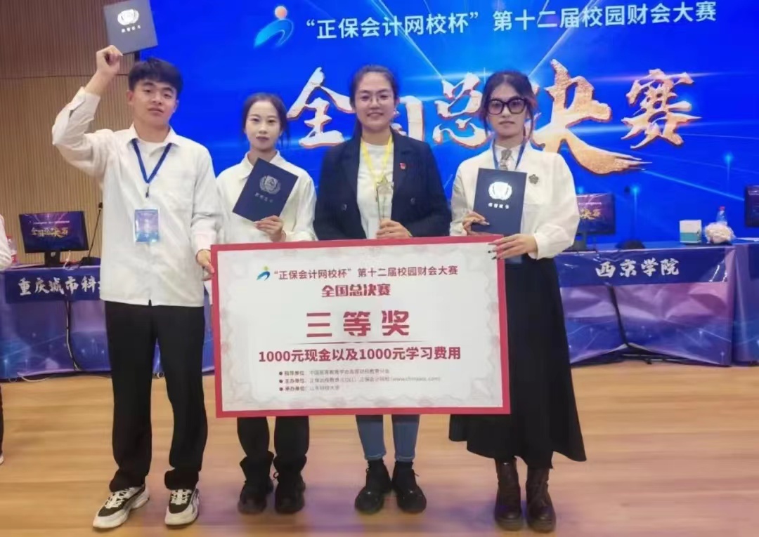 此次大赛共有近400所高校,数十万学子参赛。会计学院参赛队伍在历经层层选拔后成功晋级全国总决赛,凭借全体队员扎实的专业基础和出色的赛场发挥,经过激烈角逐,最终斩获“正保会计网校杯”第十二届全国校园财会大赛全国总决赛三等奖。