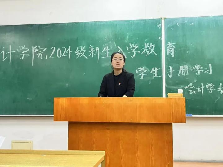 2022级辅导员王明炜老师耐心细致地讲解了学生违纪处分相关办法及学业预警管理办法等新生最需要注意的相关条例,并对会计学院的相关条例做了一些举例阐释,既将《学生手册》的内容讲解清晰,又让同学们在愉快轻松的氛围中对学生手册的内容有了更深刻详细的认知。