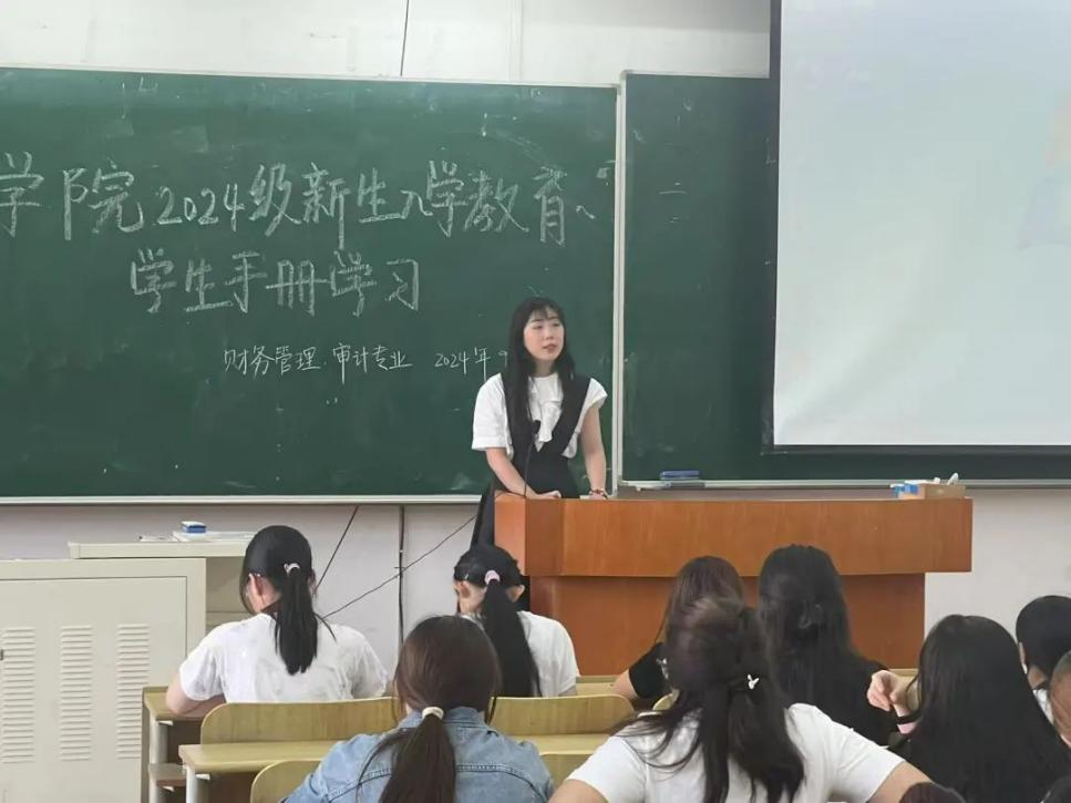 为进一步增强学生自我教育、自我管理、自我服务意识,促进学生规范自身行为,提高学生遵规守纪的意识,营造良好的学风氛围,会计学院于2024年9月10日至12日开展2024级新生《学生手册》专题学习活动。本次活动由会计学院党委副书记王博、全体辅导员、教学秘书老师主讲,2024级全体新生参加学习。
