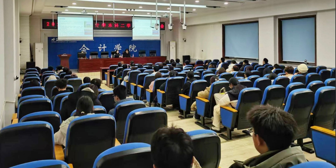 2024年11月20日17时20分,在会计学院报告厅举办2025年春季会计学专业本科自考二学历宣讲会。此次宣讲会由会计学院曲志丽老师和王琦老师共同宣讲,吸引了众多对会计学二学历感兴趣的在校生参加。