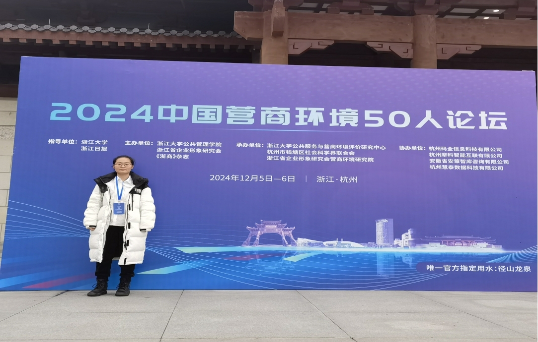 中国经济正处于由高速增长转向高质量发展的关键时期,为深入探讨“如何加快营造市场化、法治化、国际化的一流营商环境”这一议题,第二届中国营商环境50人论坛于2024年12月6日在浙江大学紫金港校区求是大讲堂隆重召开。会计学院财务管理教研室教师崔莹指导的会计学硕士研究生齐忠圆参加了此次会议,并进行了平行论坛的论文汇报与交流。