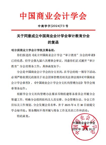 2024年12月30日,成立“中国商业会计学会审计教育分会”(以下简称审计教育分会)的申请经中国商业会计学会第九届六次理事会审议通过,这是我校会计学院作为核心发起人设立的全国性审计教育交流平台,将进一步提升我校审计专业影响力。